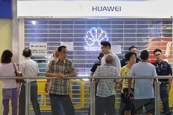 Cửa hàng Huawei dán thông báo hết hàng khuyến mại ngay từ lúc chưa mở cửa