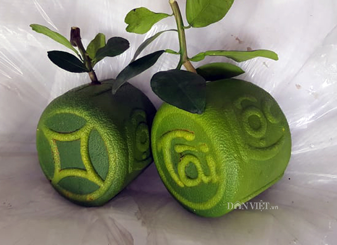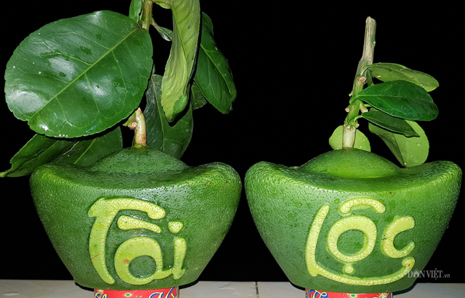 Bưởi tạo hình đồng tiền có chữ Tài Lộc.