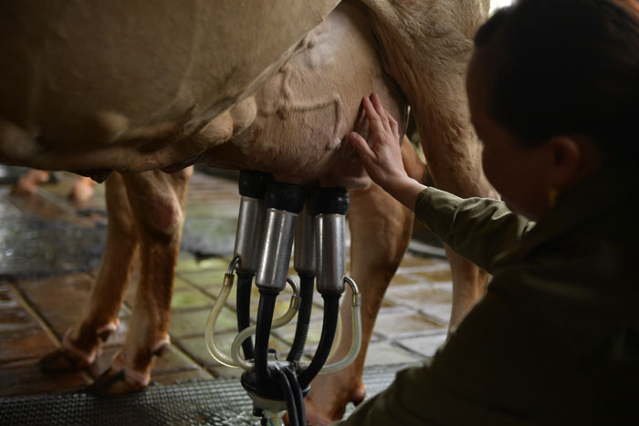 Vợ chồng chị Đoan đầu tư mua sắm 3 máy vắt sữa bò hiện đại.