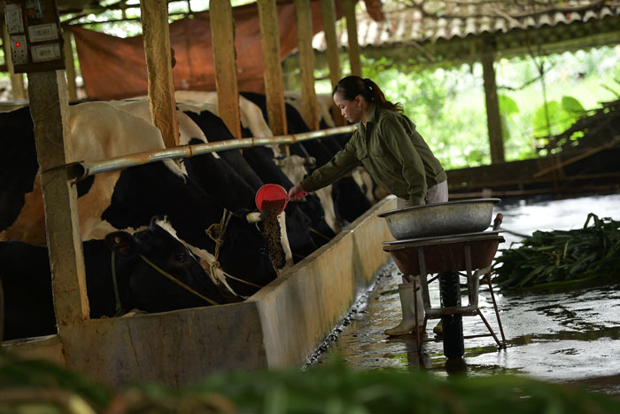 Trang trại bò này là của chị Lương Thị Đoan ở Vĩnh Phúc. Trang trại của chị hiện đang có 30 con bò sữa. Nhờ đàn bò, thu nhập mỗi tháng của chị lên tới cả trăm triệu đồng.