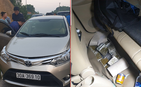 Kiểm tra trong xe, phát hiện 120 bánh heroin được giấu dưới tấm lót của sàn xe, tổ công tác phải dùng kéo rạch các tấm lót mới lấy được hết số ma túy trên.