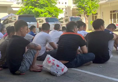 Nhóm khách sử dụng ma tuý đang được công an phân loại để xử lý. Ảnh: N.T.