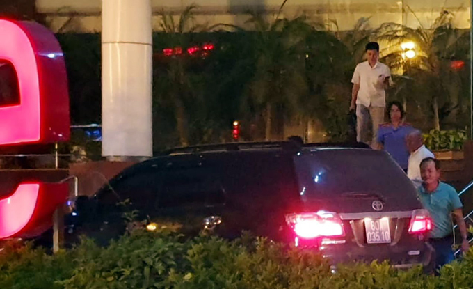 5 xe biển xanh chở cán bộ VKS và nhiều người đến toà nhà MobiFone lúc 19h30 ngày 26/8, rời đi sau một tiếng. Ảnh: Phạm Dự