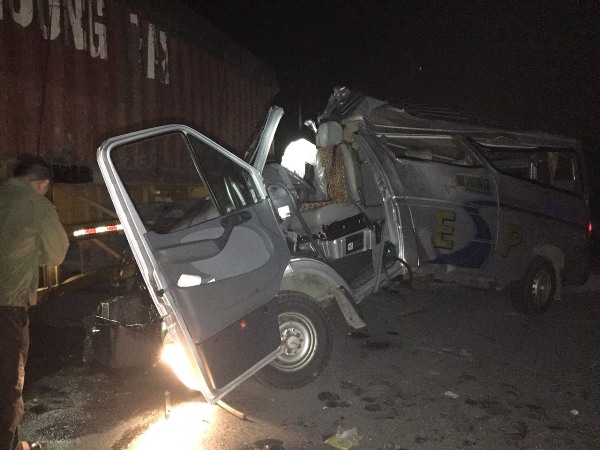 Lúc này, xe container đi trước, giảm tốc độ, định tạt vào lề đường bên phải (do tài xế phát hiện xe có sự cố) thì xe khách 16 chỗ đi sau vượt lên va chạm vào bên trái đuôi xe container.