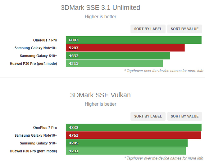 Thử nghiệm đồ họa cho thấy kết quả khá ấn tượng - Galaxy Note10 + nhanh hơn một chút so với Galaxy S10 +. Các thử nghiệm 3DMark cho thấy sự cải thiện đáng kể so với Galaxy S10 + và mức tăng không giới hạn đối với API đồ họa mới.