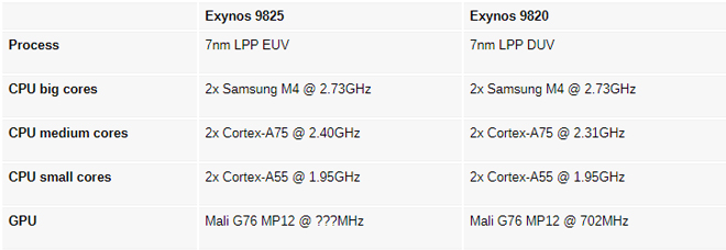 Kết cấu chip của Exynos 9825 trên Galaxy Note10+ và Exynos 9820 trên Galaxy S10.