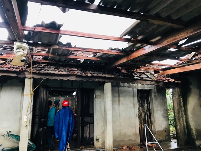 Hệ thống cột điện, cây cối và hoa màu bị gió quật ngã. “Nghe thông tin bão ngày mai mới vào đến đất liền. Khi tôi đang ở trong nhà thấy gió thổi mạnh, mái ngói đổ sập xuống nên cứ nghĩ bão số 4 vào. May mắn mọi người không ai bị thương”, bà Doãn Thị Phương, trú tại thông Hoa Tiến cho biết.