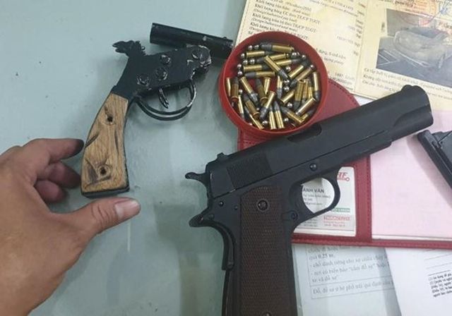 Nhận tin báo, Công an quận Phú Nhuận nhanh chóng đến hiện trường kịp thời ngăn chặn và khống chế bắt giữ các đối tượng cùng tang vật. Tại cơ quan công an, Hoàng khai nhận 2 khẩu súng được mua của người đàn ông (không rõ danh tính) qua mạng xã hội với giá 13,5 triệu đồng.
