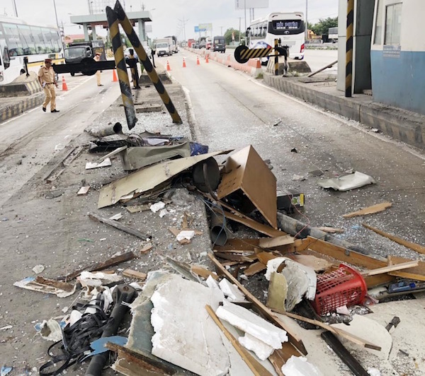 Khi đến trạm thu phí cao tốc, xã Thân Cửu Nghĩa, huyện Châu Thành, Tiền Giang, xe container tông sập hoàn toàn cabin số 3, buồng thu phí vỡ nát.