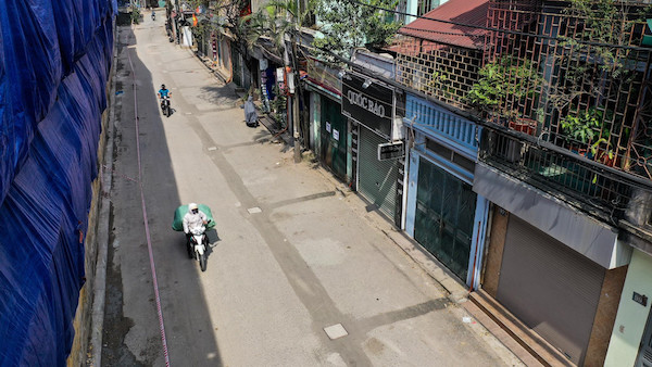 Hầu như ai qua lại cũng đi thật nhanh. 10 người thì 8 người đeo khẩu trang, cảnh chưa từng thấy trong con ngõ từng khá nhộn nhịp với cảnh giao thương mua bán này. Ở đây có đủ loại hình kinh doanh, từ cửa hàng thời trang, tiệm cắt tóc gội đầu, nha khoa, nhà hàng ăn uống...