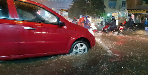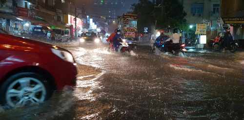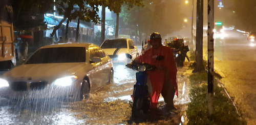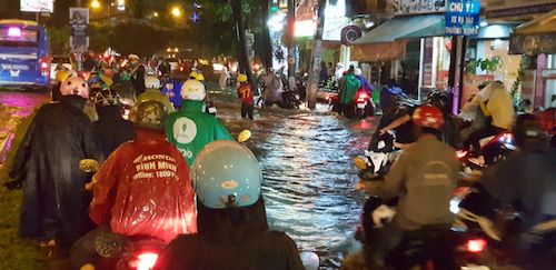 Đây là cơn mưa lớn nhất từ đầu mùa và cũng là trận ngập nặng nhất ở đường Nguyễn Hữu Cảnh.