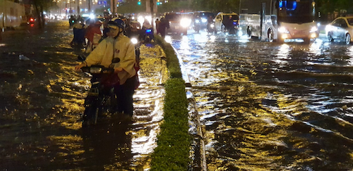 Mặc dù có siêu máy bơm nhưng đường vẫn thành sông, chắc phải cố vấn bà nghị viên dùng LU hay khui LON gì đó để chống ngập.
