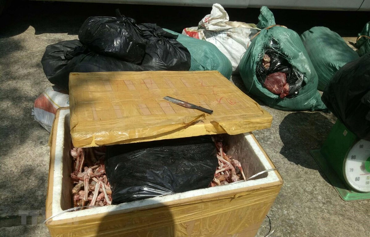Qua kiểm tra, lực lượng chức năng phát hiện trên xe chở theo 260kg thịt, 25kg xương, 150kg bì động vật được đựng trong thùng xốp và nhiều bao tải. Toàn bộ số hàng trên đã bị biến chất.