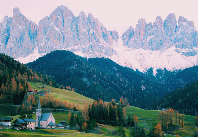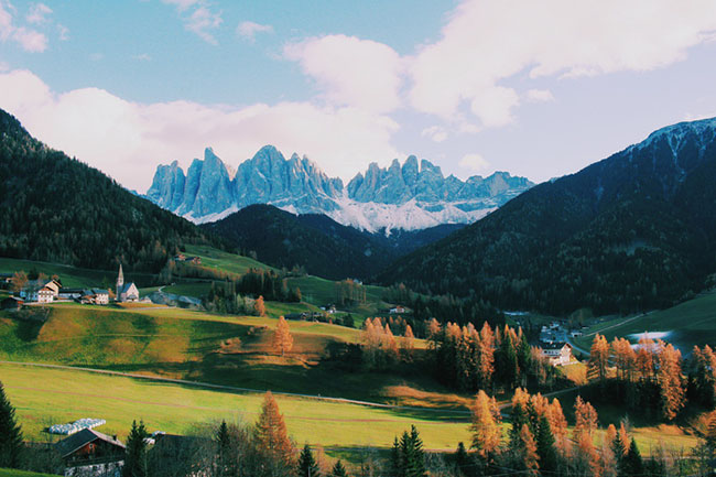 Val di Funes là thung lũng xinh đẹp thuộc tỉnh South Tyrol (Ý) với tầm nhìn ra dãy Dolomites. Dolomites được đưa vào danh sách di sản thế giới với những cảnh quan không thể có ở bất cứ một nơi nào khác.