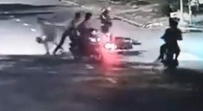 Thấy vậy, hai tên cướp quay đầu xe, cùng với hai đồng bọn đi xe máy phía sau bao vây tấn công hai nạn nhân. Hai nạn nhân hoảng hốt bỏ chạy ra xa, một nam thanh niên đã đến dựng xe máy của nạn nhân (đang ngã dưới đường) cùng với đồng bọn tẩu thoát.