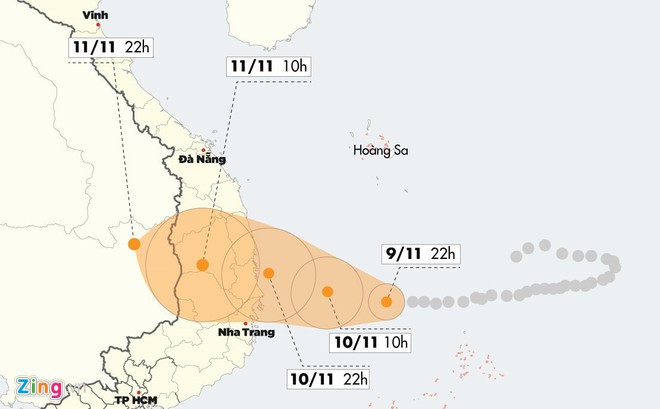 Trong 24 giờ tới, bão di chuyển theo hướng tây tây bắc với vận tốc 10-15 km/h và có thể đổ bộ vào đất liền chiều tối hoặc đêm 10/11 rồi suy yếu thành áp thấp nhiệt đới.