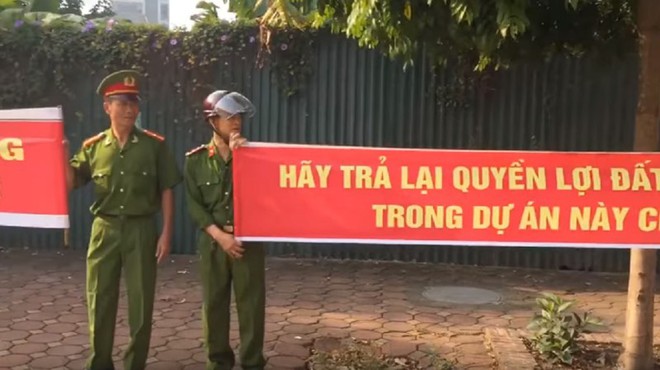Ngày 12/11, mạng xã hội đăng clip có hình ảnh 10 người mặc sắc phục công an, cầm băng rôn có nội dung đòi quyền lợi liên quan đến dự án nhà ở của cán bộ chiến sĩ Công an huyện Đông Anh.