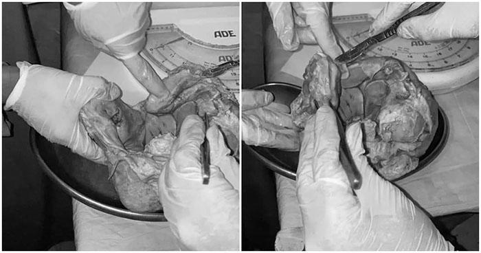 Do tuổi của bệnh nhân và kích thước của bào thai chết lưu quá lớn nên bắt buộc phải phẫu thuật để loại bỏ. Trong quá trình phẫu thuật, bác sĩ phát hiện ra em bé được bao quanh bởi một khối vôi dày, không có ung thư hay xơ hóa liên quan đến em bé.