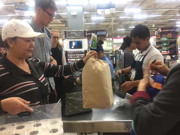 Hầu hết siêu thị ở Philippines đều dùng túi giấy để đựng hàng hóa cho khách - Ảnh: MINH KHUÊ