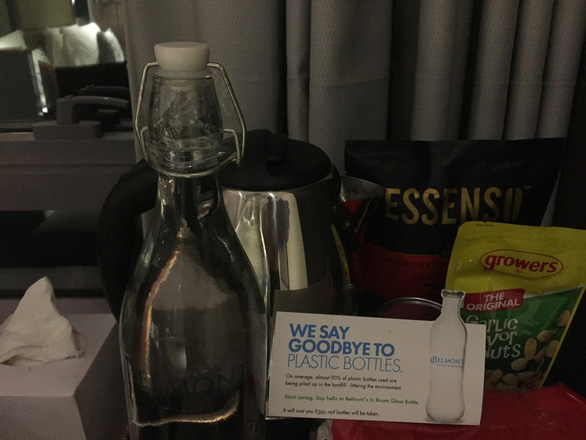 Ngoài ra, khách ở khu nghỉ dưỡng Busuanga bước vào phòng sẽ gặp ngay dòng chữ: "Chúng tôi nói lời tạm biệt chai nhựa" bên cạnh chai thủy tinh đựng nước phục vụ du khách. Nơi này cũng dùng ống hút giấy thay ống hút nhựa.