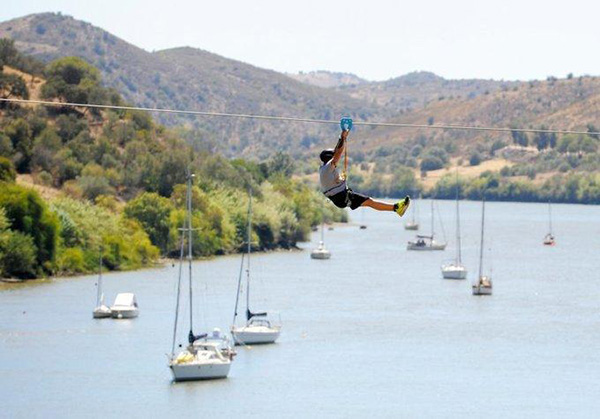 Vì 2 quốc gia chênh nhau một múi giờ nên đường zipline được gọi là chuyến du hành ngược thời gian khi du khách xuất phát từ phía Tây Ban Nha. Sau khi tới Bồ Đào Nha, bạn sẽ không được lưu trú lâu ở đó. Giá vé là 15 Euro, đường trượt mở cửa từ cuối tháng 3 tới đầu tháng 12 và cần đặt chỗ trước vào mùa cao điểm từ tháng 7 đến giữa tháng 9.