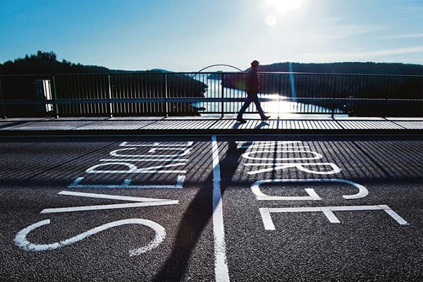 Cầu Svinesund cũ là nơi ngăn cách thành phố Stromstad, Thụy Điển và thành phố Halden của Na Uy. Trên ảnh là cây cầu cũ dài khoảng 1 km được xây dựng năm 1946, với đường biên giới phân chia bên trái là Thụy Điển, bên phải là Na Uy.