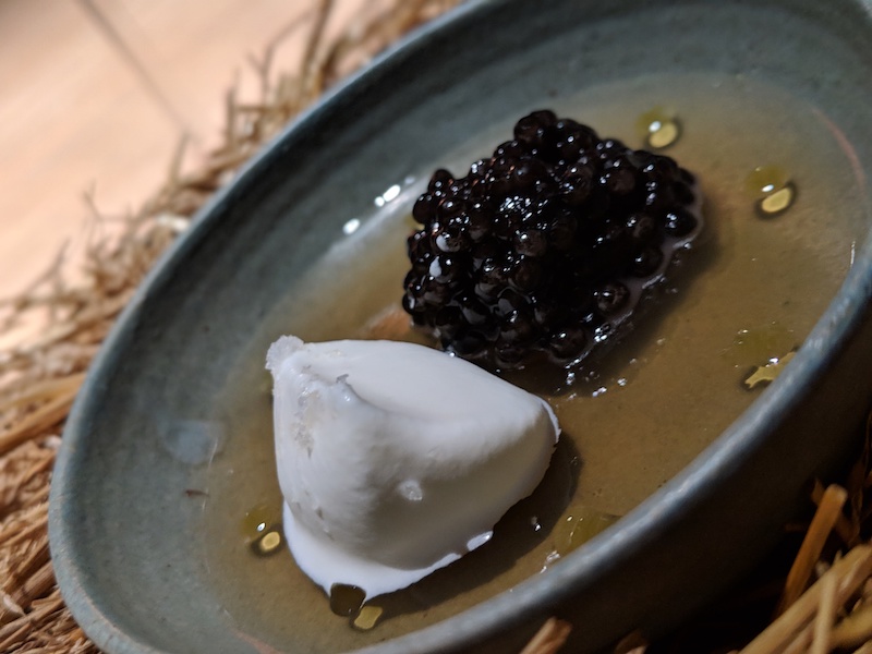Kem đánh bông ăn kèm với trứng cá muối và nước dùng lạnh. Hương vị rất tuyệt vời.
