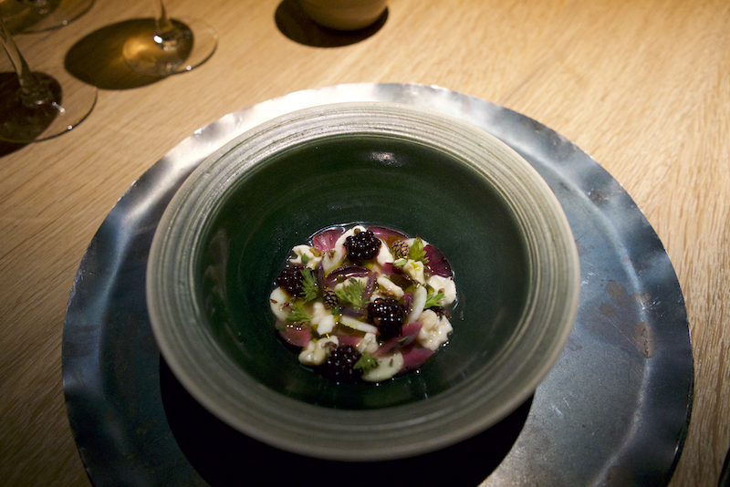 Món tiếp theo là trái tim gà lôi ăn cùng với mận khô.