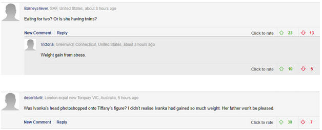 Một số khác cho rằng, có lẽ Ivanka không tránh được quy luật của thời gian, bắt đầu có dấu hiệu lão hóa và việc tăng cân chóng mặt như hiện nay cũng là một biểu hiện của phụ nữ "toan về già". Mặc dù vậy, nhiều người tin tưởng rằng, con gái lớn của ông Trump sẽ sớm lấy lại phong độ như xưa.