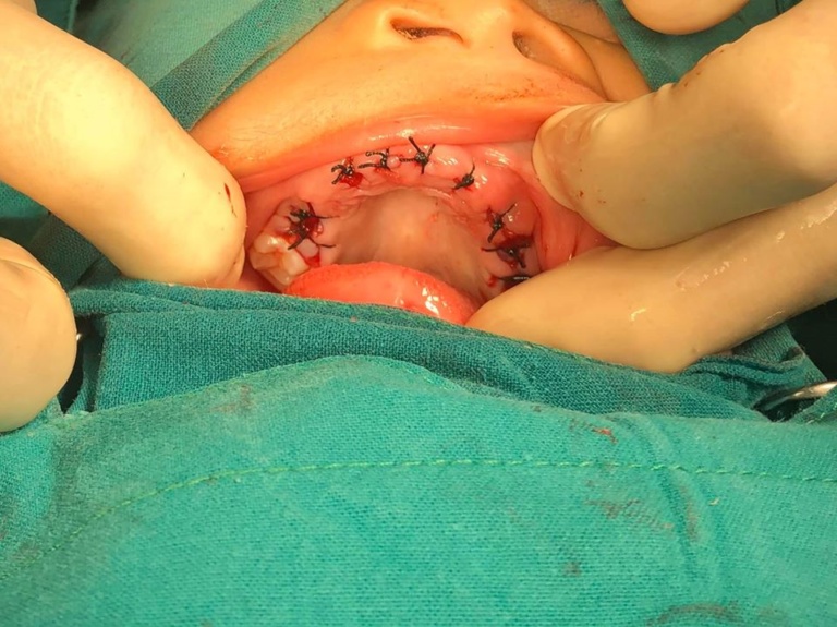 Trước khi nhổ 20 chiếc răng bị sâu, cậu bé được tiêm 14 mũi thuốc gây mê và khâu 18 mũi.