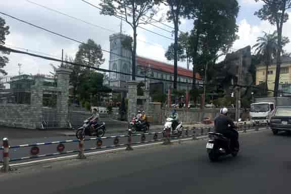 Nhà thờ Thủ Đức vốn ở khu đất cao nhất phường Linh Xuân nay thì thấp gần ngang mặt đường. (Hình: Trần Tiến Dũng/Người Việt)