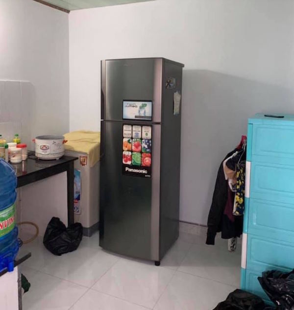 Khu vực cửa ra vào chỉ để vừa 1 chiếc xe máy cộng thêm một người đứng cạnh thôi đã thấy chật chội.