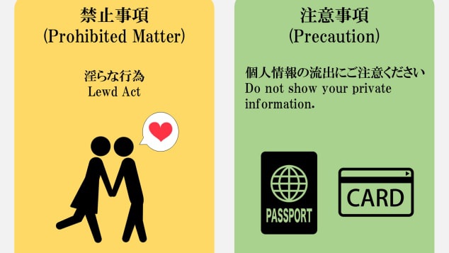 Tấm bảng bằng tiếng Nhật và tiếng Anh cũng được đặt trước máy quay để người xem biết khi anh đi ra ngoài và trở lại.