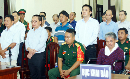 Các bị cáo tại tòa. Ảnh: Tòa án Quân sự Quân khu 7