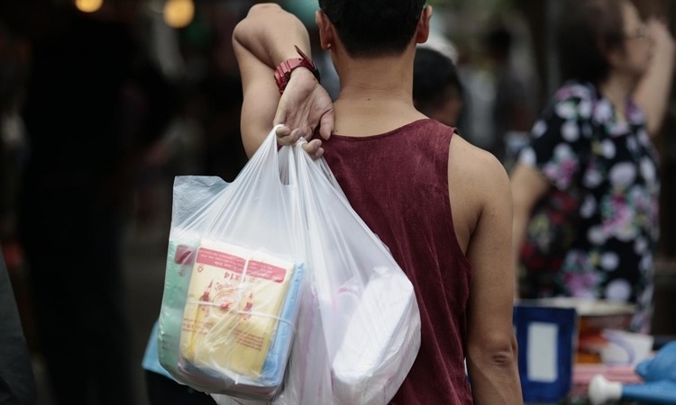 Một người cầm túi nhựa ở Bangkok. Ảnh: Bangkok Post.
