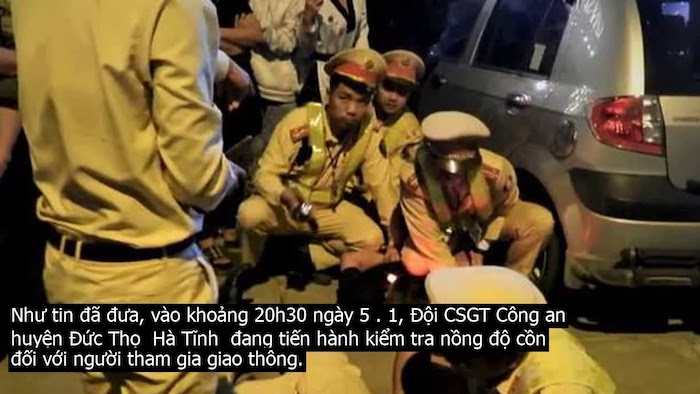 Sự việc xảy ra vào khoảng 20h30 ngày 5/1, Đội CSGT Công an huyện Đức Thọ (Hà Tĩnh) đang tiến hành kiểm tra nồng độ cồn đối với người tham gia giao thông.