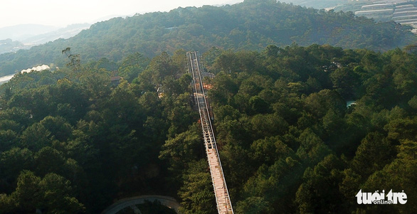 Cũng tại đây, chủ đầu tư còn cho lắp dựng khung sắt lắp ghép nhà chờ rộng 8m, dài 20m, cao 4m. Cầu đáy kính sẽ nối khu vực "vườn cây mê cung" (Khu du lịch thung lũng Tình yêu) với khu vực "vườn thơ Hàn Mặc Tử" (Khu du lịch đồi Mộng mơ) dài 221,5m, rộng 2,09m, khoảng cách giữa hai đỉnh trụ tháp là 255m.