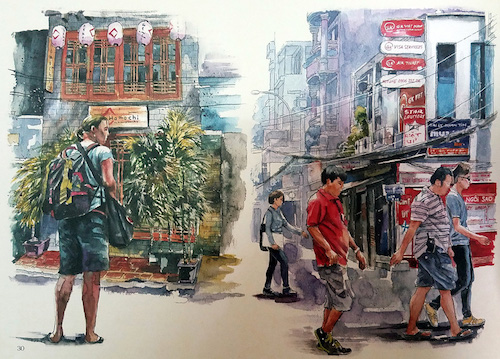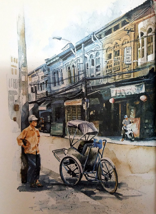 Và thành quả trong ba năm thực hiện mong muốn ấy nay đã hiện diện trên kệ sách dành cho bạn đọc nhân dịp xuân về: tập sách gồm tranh màu nước và ký họa mang tên Cảnh sắc phố thị Sài Gòn - Chợ Lớn (Phương Nam và NXB Thế Giới).