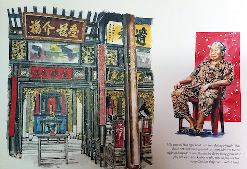 Bên trong đình Minh Hương Gia Thạnh và hình ảnh một phụ nữ Hoa đặc trưng khu Chợ Lớn