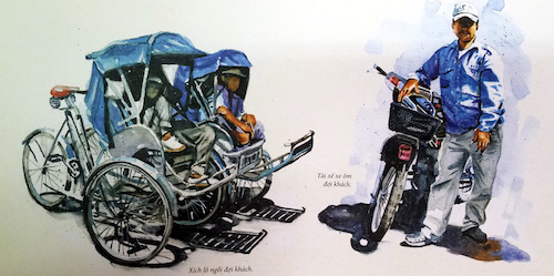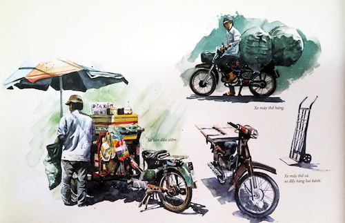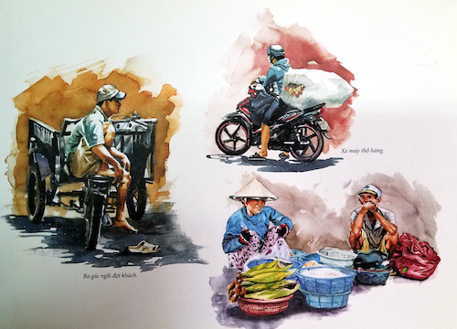 Nhưng có lẽ nội dung ấn tượng khó quên của tập sách chính là phần Kiếm sống trên đường phố Sài Gòn - Chợ Lớn. Tác giả vẽ rất sinh động hình ảnh chiếc xích lô, bác xe ôm đang đợi khách, chàng thanh niên bên xe ba gác, cô hàng rong, xe bán dừa xiêm, xe máy thồ hàng, khuân vác hàng hóa, vựa ve chai, nhóm bốc xếp...