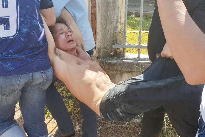 Hoàng sau đó cầm hung khí lao ra tấn công lực lượng chức năng và bị khống chế.