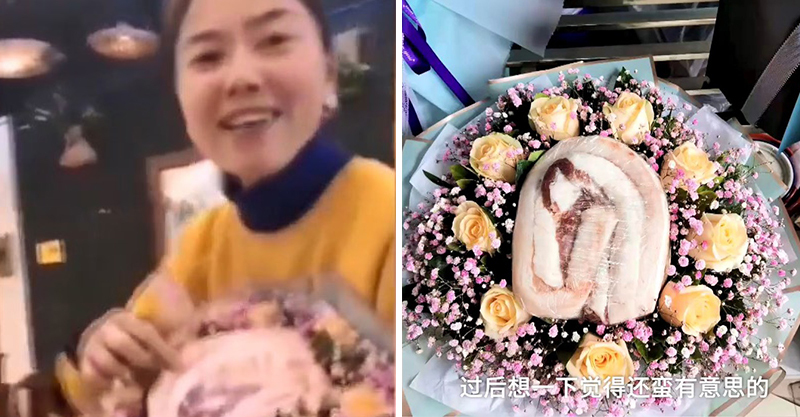 Vào ngày 8/11/2019, một người phụ nữ ở quận Đồng Nam, Trùng Khánh đã tặng một bó “hoa thịt lợn” trong nhân sinh nhật của người chị, được ca ngợi là thực tế, rất tuyệt vời.