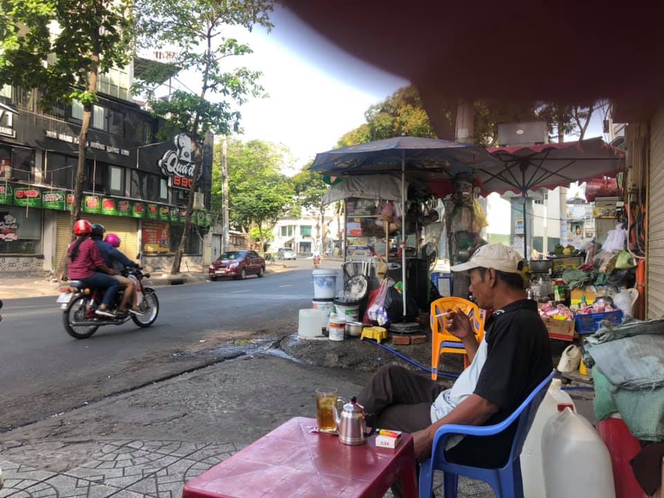 Ở đâu đó trên những góc phố, có những người ngồi thưởng thức ly cà phê buổi sáng, ngắm đường phố Sài Gòn ngày cuối năm. Ảnh: N.T