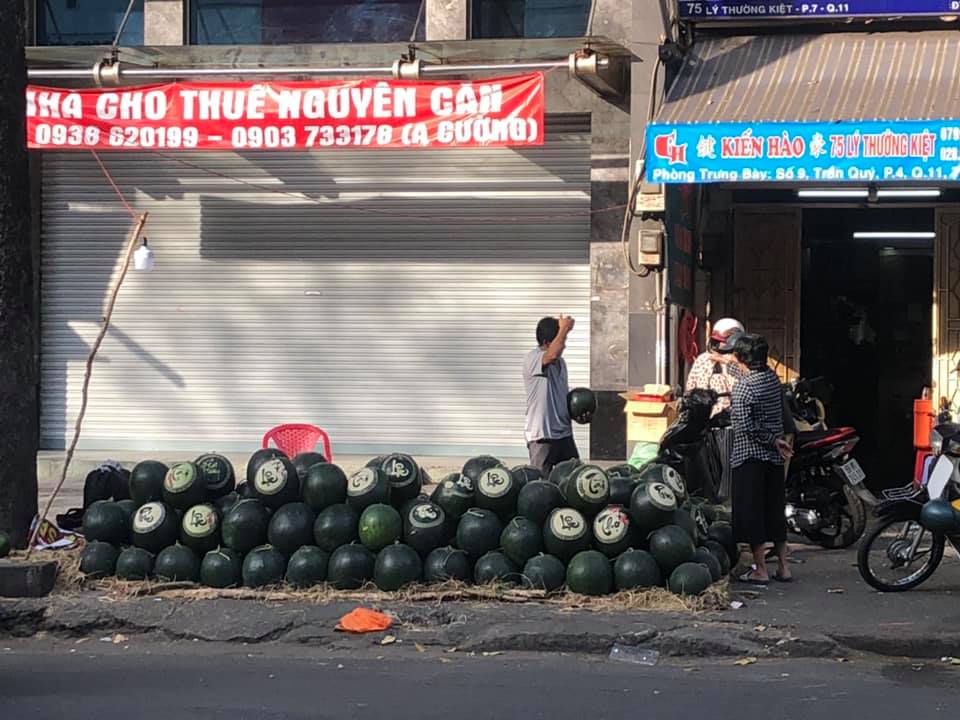 Dưa hấu bán bên lề đường cũng thưa vắng khách mua. Ảnh: N.T