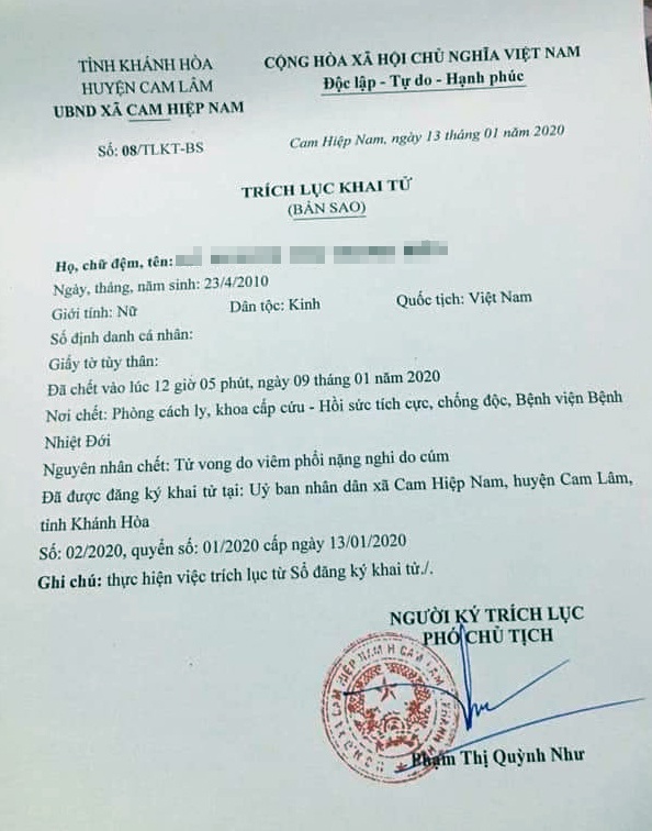 Sáng 27/1 (mồng 3 Tết Canh Tý), ông Lê Tấn Phùng, Phó giám đốc Sở Y tế Khánh Hòa xác nhận trên địa bàn có một ca bệnh tử vong do cúm và dương tính với một chủng của virus corona.