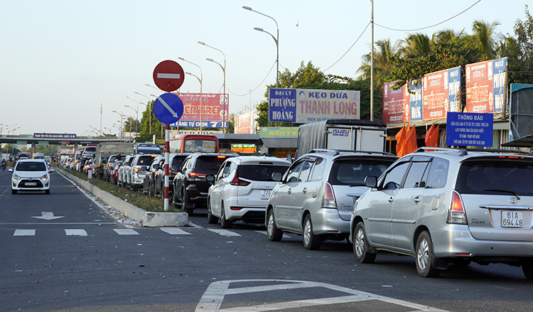 Xe máy, ôtô trở lại TP HCM đông, cùng với tai nạn chết người khiến khu vực cầu Rạch Miễu kẹt xe kéo dài gần 10 km.