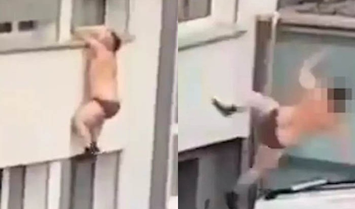 Trang The Sun đưa tin, ngày 30.1 vừa qua, video một người đàn ông gần như không mặc gì hoàn toàn đang thu hút rất nhiều sự quan tâm từ cư dân mạng. Nội dung video là một người đàn ông chỉ mặc mỗi đồ lót và vớ đang "đu đưa" trên bệ cửa sổ cao 6 mét. Sau đó, vì không thể chịu đựng nên anh ta đã ngã xuống đất.