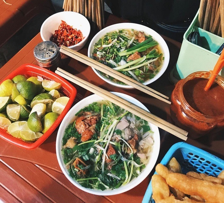 Nếu thích ăn phở đêm, du khách có thể tìm đến quán phở bò, ở cuối đường Tống Duy Tân, đầu đường Trần Phú. Ở đây mở cửa từ 6h tới khoảng 3h, 4h sáng hôm sau. Món nổi bật nhất là phở sốt vang, với thịt gân ninh nhừ, vàng óng và dậy mùi gừng tươi, cà chua, hạt tiêu. Điểm cộng thứ 2 là mỗi bát phở đều đầy ắp hành tước, nước dùng ngọt mà không lợ vị mì chính. Mỗi bát phở có giá 35.000 - 40.000 đồng. Ảnh: Eaten By Long.
