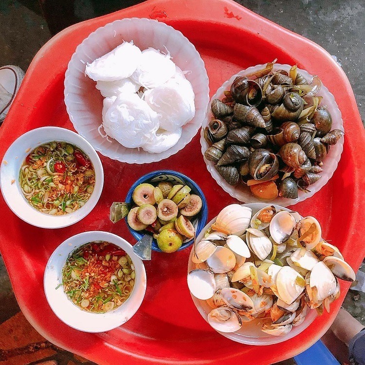 Ở dọc phố Tống Duy Tân có duy nhất gánh ốc ở số 5. Gánh được nhiều bạn trẻ gọi bằng cái tên "quán bà câm" vì ở chủ hàng là người khiếm thính. Tuy nhiên, du khách vẫn có thể gọi món qua những nhân viên. Món chính ở đây là ốc luộc, ăn kèm bún lá chấm nước mắm chua cay, đặc biệt phù hợp trong những ngày trời lạnh. Ngoài ra, bạn có thể gọi thêm ngao xào, chân gà sả ớt, nem chua rán, trứng cút lộn, xoài và cóc dầm. Các món ăn ở đây được đánh giá là sạch sẽ, đầy đặn. Các bát ốc nóng hổi thơm mùi sả, lá chanh, xoài trộn giòn và nước chấm là điểm cộng. Quán thường mở từ 14h đến 20h. Giá trung bình hai người ăn là 150.000 đồng. Ảnh: Meilee.