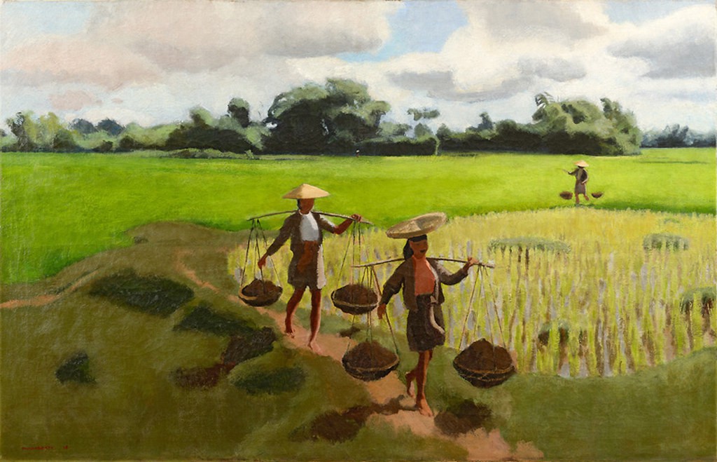 Nữ nông dân trên cánh đồng lúa. Tranh của Joseph Inguimberty (1896-1971), người được mệnh danh là "họa sĩ của đồng bằng Bắc Bộ".